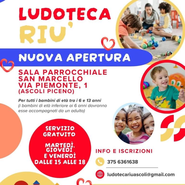 Sarà aperto il martedì, il giovedì e il venerdì dalle ore 15.00 alle ore 18.30.La Ludoteca RIÙ è un luogo dove il gioco, la libera espressività e l’educazione si incontrano: uno spazio in cui approfondire le conoscenze, scoprire il mondo e sperimentarlo in prima persona.