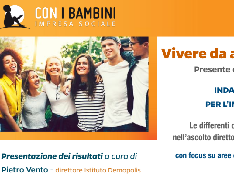 L'indagine Con i bambini – Demopolis sugli adolescenti in Italia contiene un focus sui giovani che vivono nelle periferie e nelle aree più fragili. L’ascolto di ragazze e ragazzi tra i 14 e i 17 anni ha evidenziato le differenti opportunità e prospettive degli adolescenti nel nostro Paese: le periferie e i quartieri difficili delle città italiane non sottraggono “solo” servizi ed opportunità, ma anche ottimismo e fiducia.