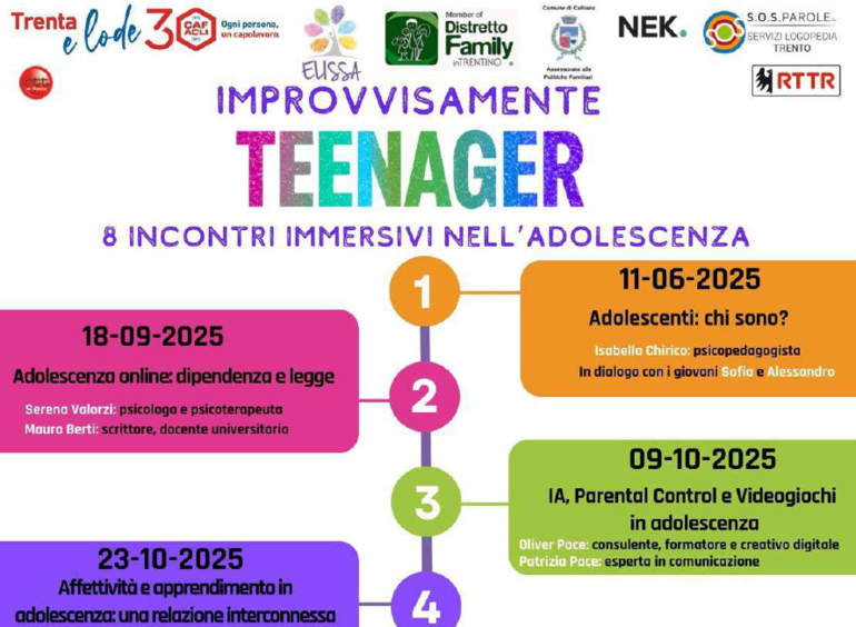 "IMPROVVISAMENTE TEENAGER" 8 incontri immersivi nell'adolescenza. Promosso dal Distretto famiglia Vallagarina.